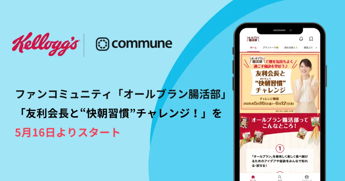 コミューン株式会社は、ファンコミュニティ「オールブラン腸活部」と協力し、新たに「友利会長と“快朝習慣”チャレンジ!」および「ちょい足し快腸AWARD」第3弾を開始することを発表しました。これらの企画は、腸活を推進するための楽しい取り組みとして、多くの方の参加を呼びかけています。特に、医師でありオールブラン公式アンバサダーの友利新さんが参加することで、信頼性と親しみやすさが加わっています。