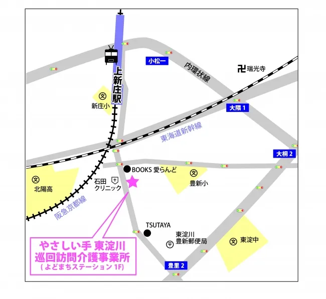新たに開設された「東淀川訪問介護事業所」は、大阪市東淀川区豊新のよどまちステーション内に位置しています。阪急電鉄京都本線上新庄駅から徒歩5分の距離にあり、アクセスも良好です。サービス開始は2016年4月1日を予定しており、今後の地域貢献への期待が寄せられています。