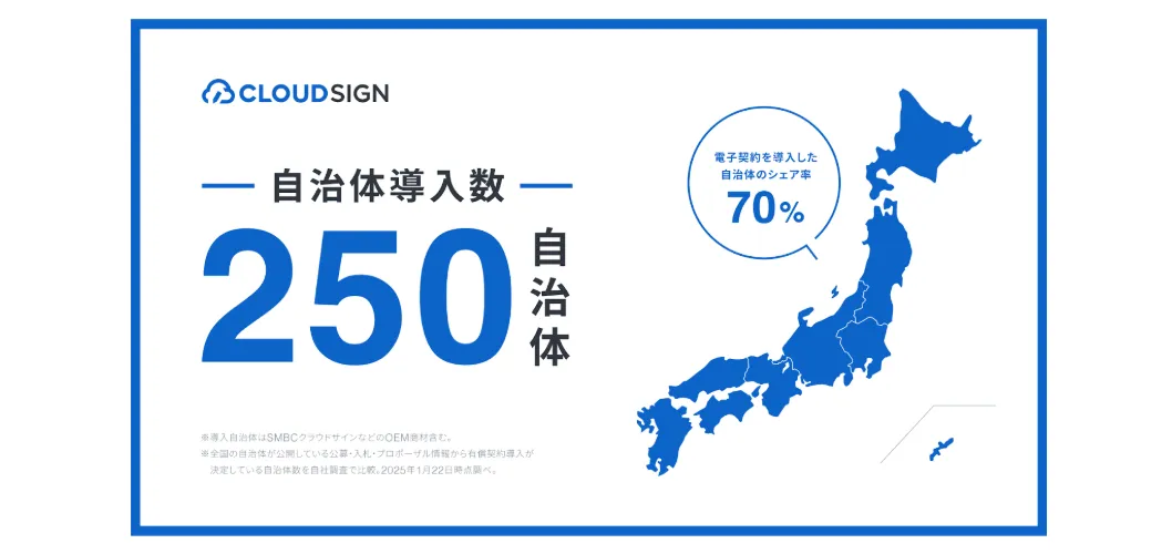 弁護士ドットコム株式会社が提供する契約マネジメントプラットフォーム「クラウドサイン」は、2024年12月時点で全国の250自治体が導入したことを発表しました。これにより、クラウドサインは自治体における電子契約サービスとしての存在感を高め、多くの地方自治体がこのプラットフォームの利便性を享受し始めています。