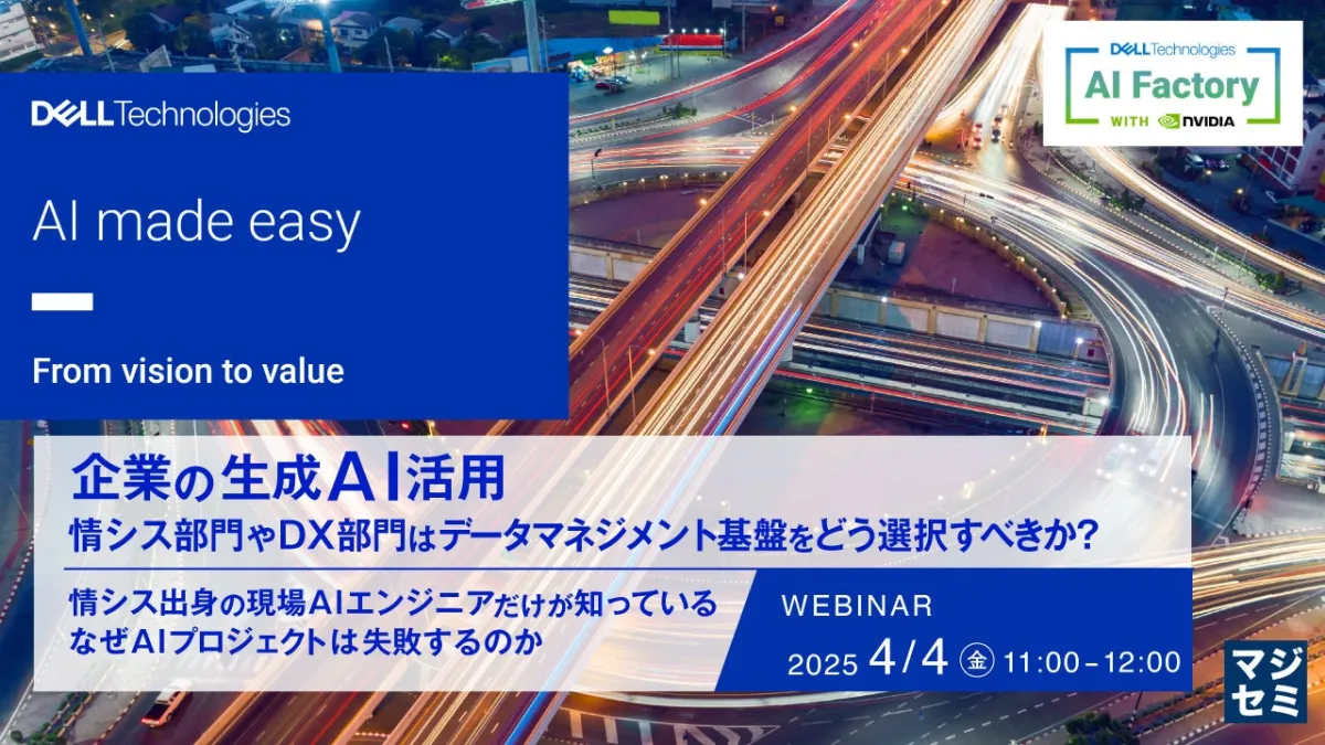 近年、企業において生成AIの導入が進んでいますが、その真の効果を引き出すためには、データマネジメントの重要性がますます高まっています。特に情報システム部門やデジタルトランスフォーメーション(DX)部門にとって、データ管理の基盤をどう選ぶかは重要なテーマです。そこで、今般、情報システムやDX部門を対象にしたウェビナーが開催されます。このセミナーでは、データマネジメントの基盤選択について詳しく解説します。