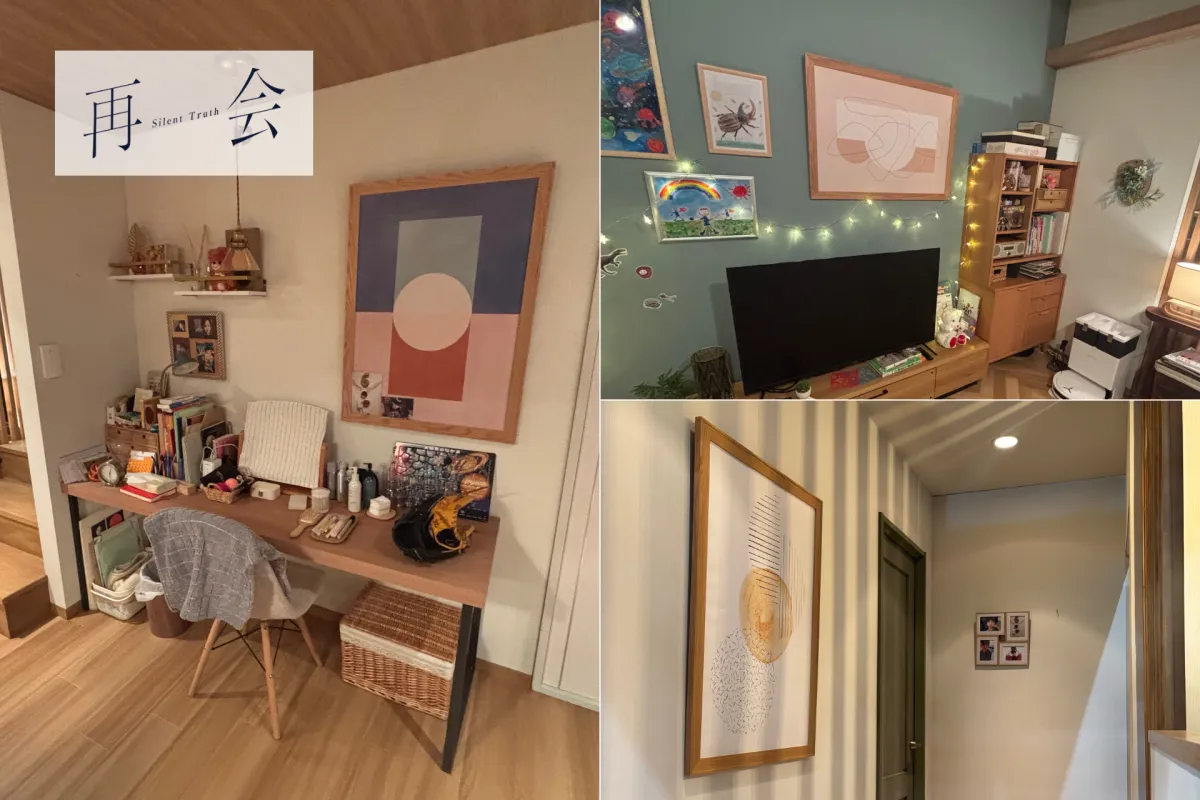 ドラマでは、主人公の自宅セットにKANADEMONOのアートポスター・ウッドフレームセットが導入されています。具体的には、以下の3点が使用されています: