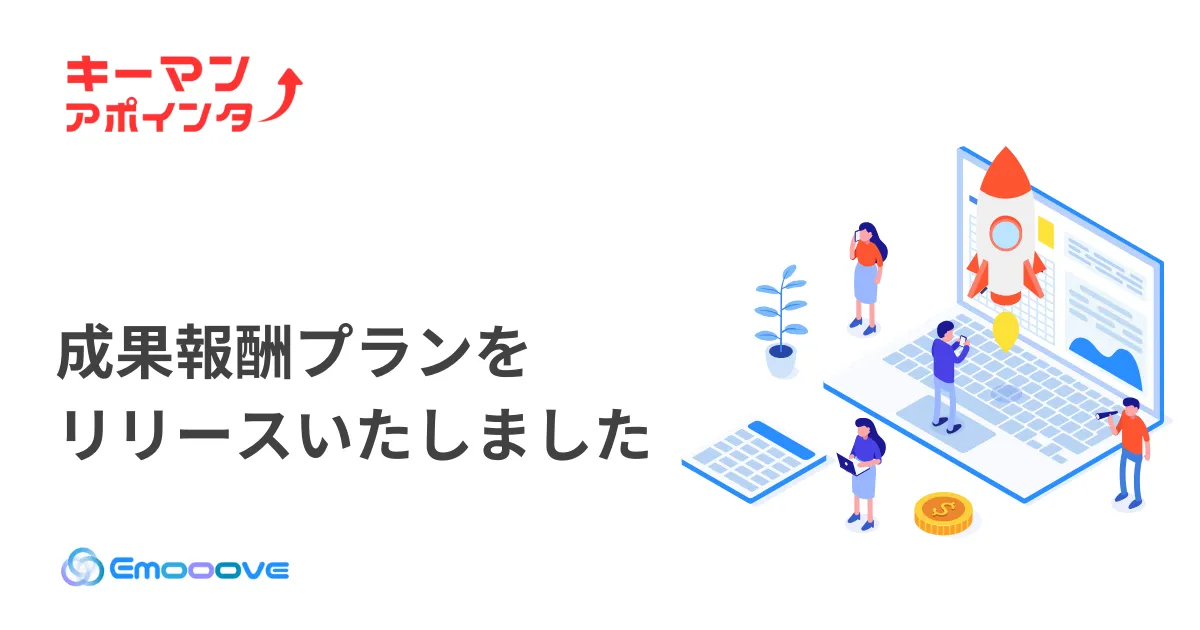 株式会社Emooove(本社:東京都渋谷区)は、新しいBtoB営業支援サービス『キーマンアポインター』に成果報酬型プランを追加したことを発表しました。これは、ターゲット企業の決裁者とのアポイント獲得をサポートするために設計された全く新しいプランです。