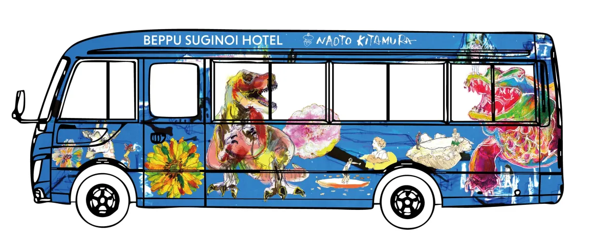杉乃井ホテルでは地域との共創を重視し、「地域共創プロジェクト」を推進しています。このプロジェクトの一環として、北村氏による描き下ろしの作品を使用したバスが制作されました。バスのデザインは、杉乃井ホテルや別府の風景、動物、三世代家族などが描かれており、バス全体で一つの物語のような構成となっています。