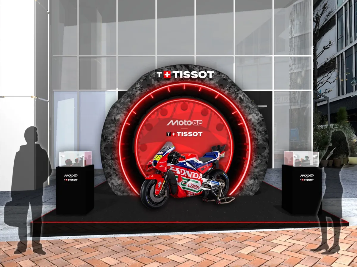 渋谷PARCOにて行われます。会場では、TISSOTのモータースポーツアーティファクトやレーシングスピリットを体現した「T-レース」コレクションの新作を公開し、MotoGP™の迫力ある展示も行います。