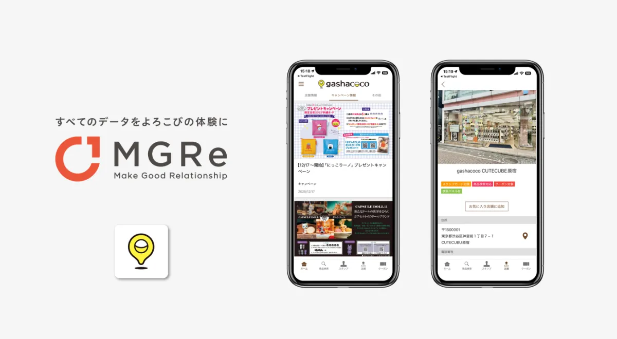 『gashacoco』は、全国での店舗展開を進めるにあたり、単発の来店だけでなく、来店後も顧客とのつながりを持続させることが重要な課題となっていました。特に、新商品や新店舗の情報を的確なタイミングで提供するための仕組みが求められていました。そこで、メグリ株式会社が提供する「MGRe」プロダクトが選ばれ、リピーター施策やユーザーエンゲージメントの強化が可能なアプリ基盤が構築されました。
