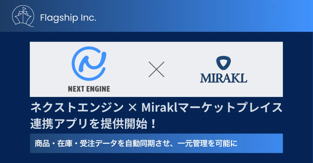 アプリの提供を通じて、フラッグシップはネクストエンジンユーザーに対するマーケットプレイスの運用をサポートし、ビジネスの効率化を図っています。ネクストエンジンは、5万店舗以上で活用される大規模なECモール・カートの一元管理システムであり、他の複数の大手プラットフォームとの連携も実績があります。