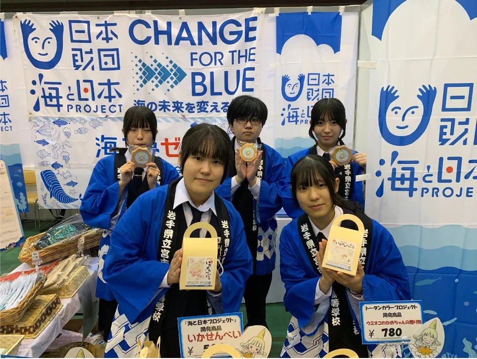 このイベントは、日本財団の「海と日本プロジェクト・CHANGE FOR THE BLUE」の一環として実施されました。生徒たち自身が自ら設計したアイテムを直接来場者に販売し、海洋ごみ問題についての理解を深めてもらうことを目的としています。販売会では、間伐材を利用したコースターと、地元の菅田せんべい店が制作したオリジナルいかせんべいの詰め合わせがラインナップされました。