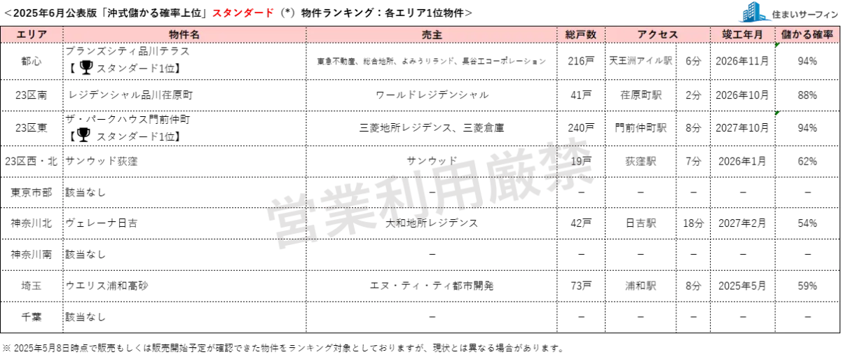 このランキングが重要視される理由は、資産性を高める要素がマンション選びにおいて極めて重要だからです。「沖式儲かる確率」は過去のプロジェクトデータを元に算出され、特に購入後の価格上昇が見込まれる物件を示しています。