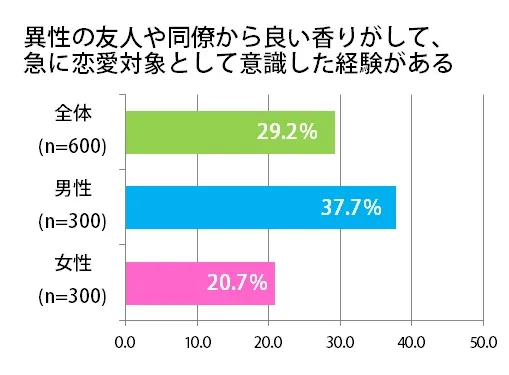 調査では、香りが恋のキッカケになるという経験を持つ人が多いことが明らかになりました。約37.7%の男性と20.7%の女性が、異性からの良い香りによって急に恋愛対象として意識したと答えました。加えて、31.3%の男性と38.3%の女性が、不快な体臭によって恋愛感情が冷めてしまった経験があると述べています。このことから、香水を選ぶことが恋愛において重要な要素であることが示されました。