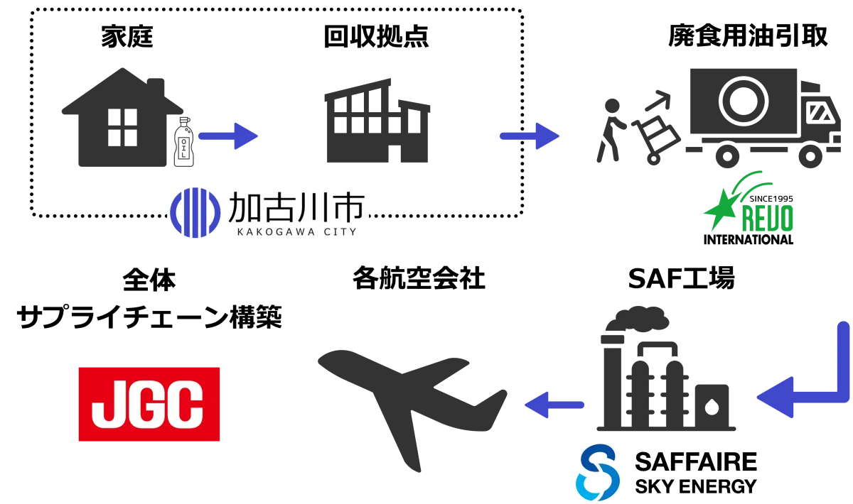 2025年8月4日、兵庫県加古川市は日揮ホールディングス株式会社、株式会社レボインターナショナル、合同会社SAFFAIRE SKY ENERGYとの間で、持続可能な航空燃料(SAF)の普及に向けた連携協定を締結しました。この協定は、家庭から排出される廃食用油を原料として、SAFの製造を促進することを目的としています。