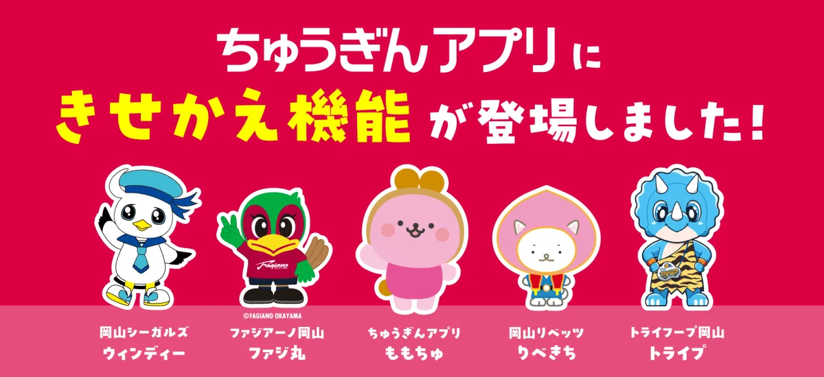 中国銀行は、岡山の地元に根差した金融機関として、地域のスポーツチームを応援する新しい試みを発表しました。それが、ちゅうぎんアプリの新機能「きせかえ」です。この機能により、アプリのホーム画面を好きなスポーツチームにカスタマイズできるようになります。特に、岡山で活躍する「岡山シーガルズ」、「ファジアーノ岡山」、「岡山リベッツ」、そして「トライフープ岡山」のエンブレムやキャラクターを楽しむことができるのです。