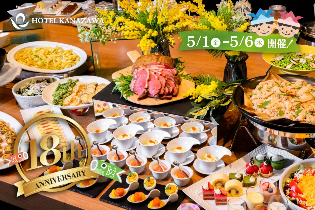 石川県金沢市にあるホテル金沢が、2026年5月1日に開業18周年を迎えます。これを記念して、ゴールデンウィークの期間中、特別なブッフェイベントが開催されることになりました。名前は「GWランチブッフェ・ファミリー感謝祭」。