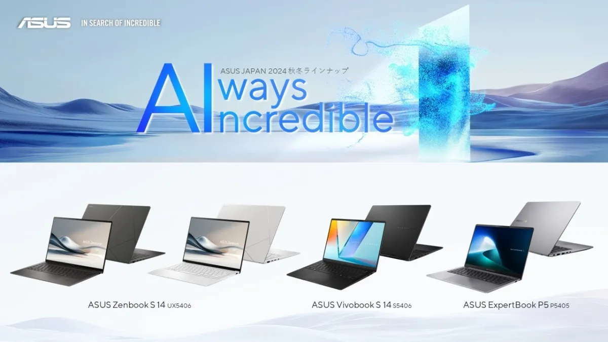 2024年9月5日、ASUS(ASUSTeK Computer Inc.)はドイツ・ベルリンで行われたIFA ASUS MEDIA DAYで、新たにAI機能を搭載した「Zenbook」「Vivobook」「ExpertBook」シリーズの発表を行いました。これらの新しいモデルには、インテルの最新プロセッサーである「Core Ultraプロセッサー(シリーズ2)」が搭載されており、特にAI機能が強化されています。予約受付は2024年9月20日から開始される予定です。
