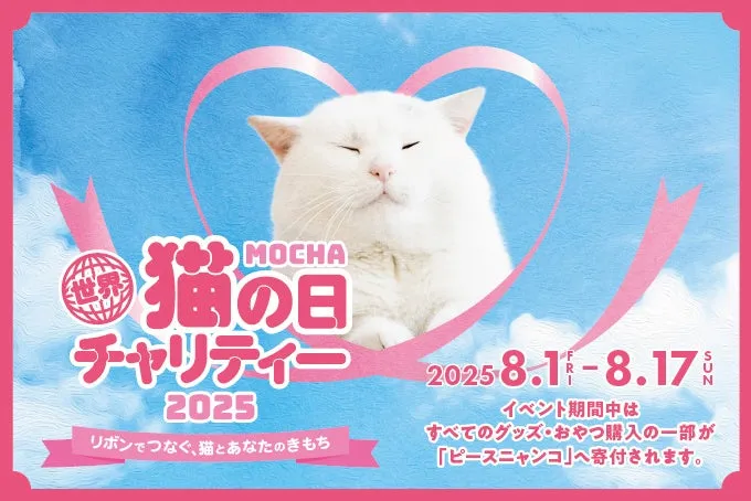 2025年8月1日から8月17日まで、全国35の猫カフェMOCHA店舗で『世界猫の日チャリティー2025 ~リボンでつなぐ、猫とあなたのきもち~』が行われます。このイベントは、「猫と過ごす時間」を通して、多くの猫たちへの愛情と関心を高めることを目的としています。