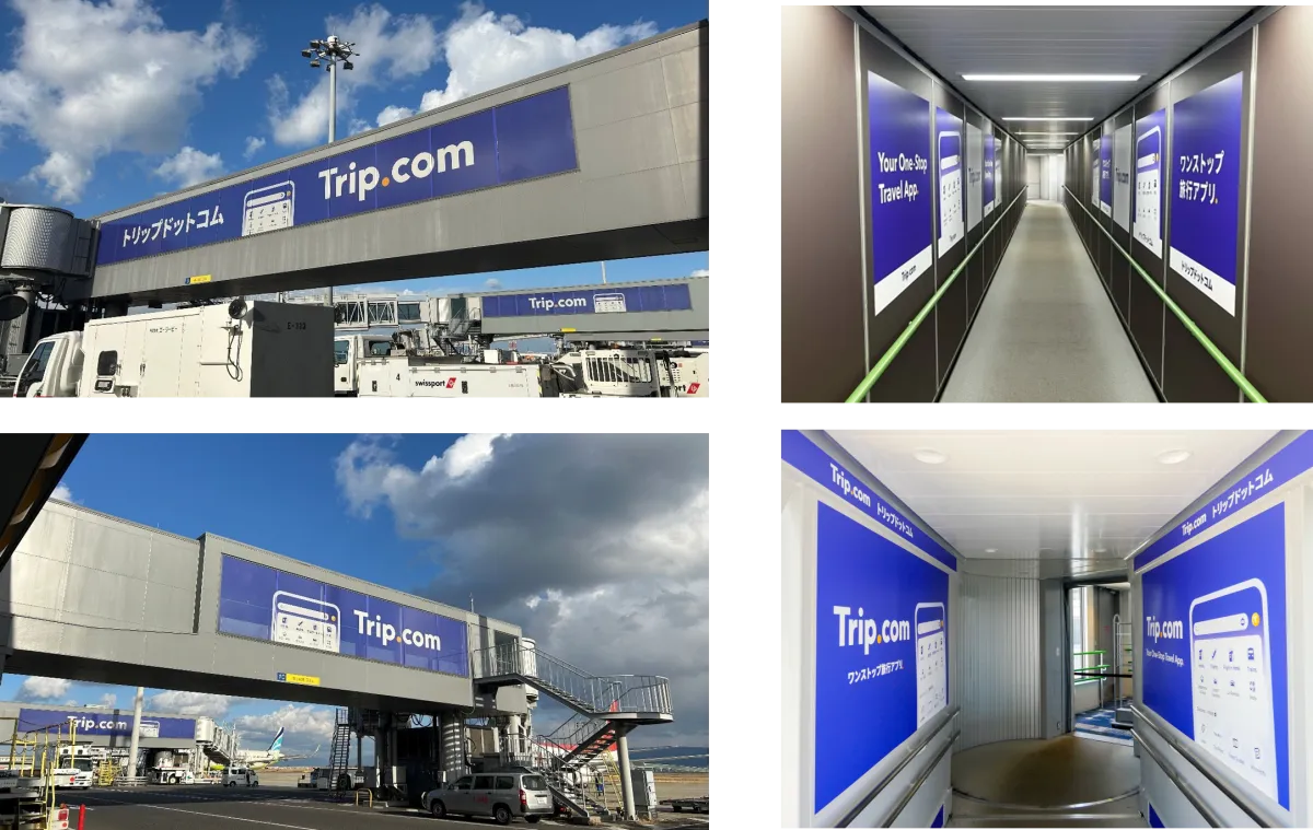 このキャンペーンでは、関西国際空港の第1ターミナル内に46カ所の広告を設置し、さらにPBB(パッセンジャー・ボーディング・ブリッジ)の内部でもアプローチを行います。多様なメディアを用いて、全体的にTrip.comのブランドを旅行者の目に留まるような配置にすることで、視覚的なインパクトを狙います。