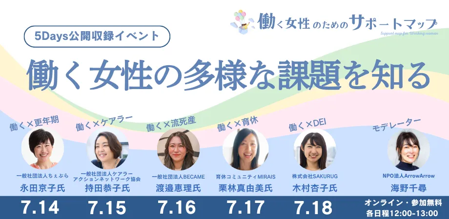 このイベントを通じて、働く女性を支えるサポート体制がどのように形成されていくのか、ぜひ共に学び、考え合う機会としましょう。