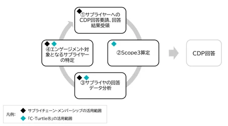 これまで、CDPが提供するデータは、企業がサプライヤーに環境データを提供するための「CDPサプライチェーン・メンバーシップ」を経由して管理されていましたが、NTTデータの「C-Turtle」プラットフォームとの組み合わせにより、回答データをシームレスに確認・分析することが可能になります。これにより、管理が煩雑だった従来の手法から、よりスムーズな運用が可能となります。