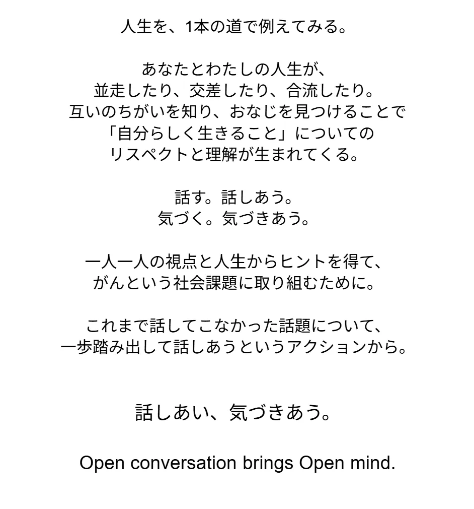 がん治療は、さまざまな課題を抱えています。それらを解決するためには、情報の共有や対話が欠かせません。2026年のWorld Cancer Weekは、その一環として実施される重要なイベントです。皆さまの参加をお待ちしております。