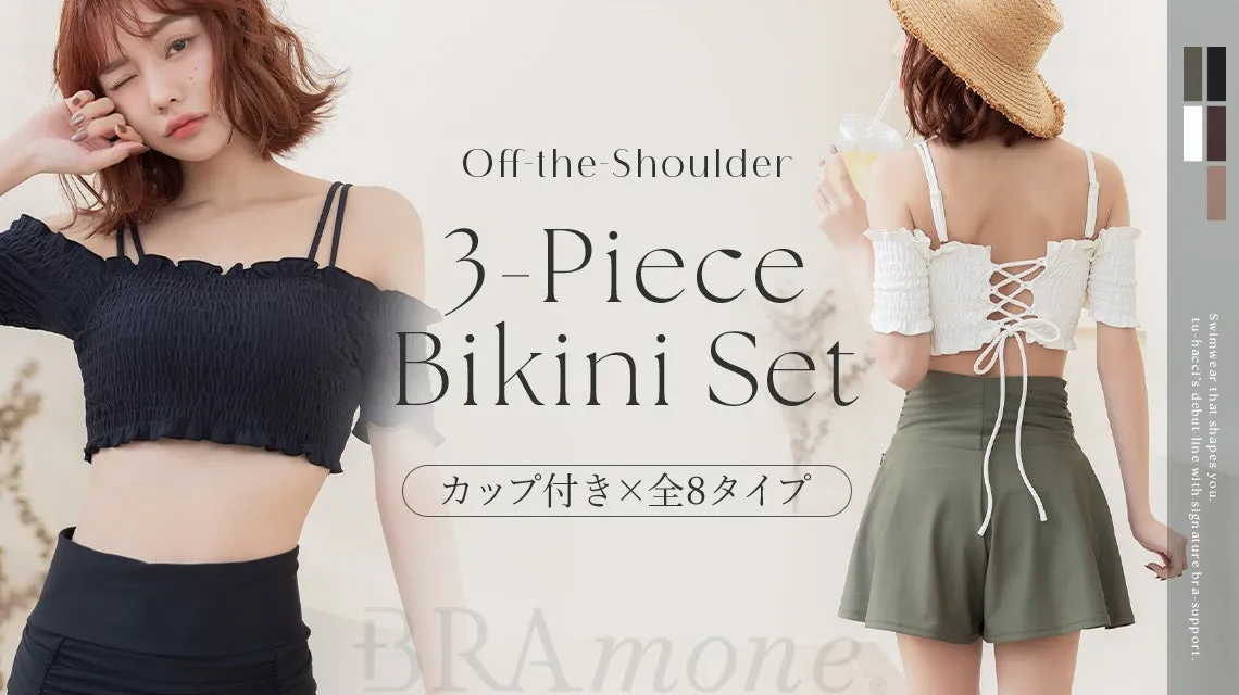 商品名: ≪2cup盛り≫「ブラモネ」オフショルダービキニ3点セット