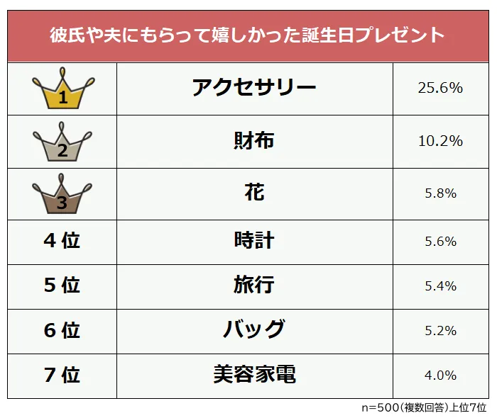 パートナーからの誕生日プレゼント、女性たちが喜ぶランキング