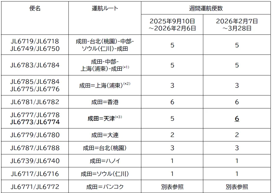 新しい路線便数計画によると、機材はすべて自社のボーイング767フレイターで運航されます。各便の具体的なスケジュールは、JALの公式サイト「JALCARGO」で随時発表される予定です。主要な運航は以下のようになります。