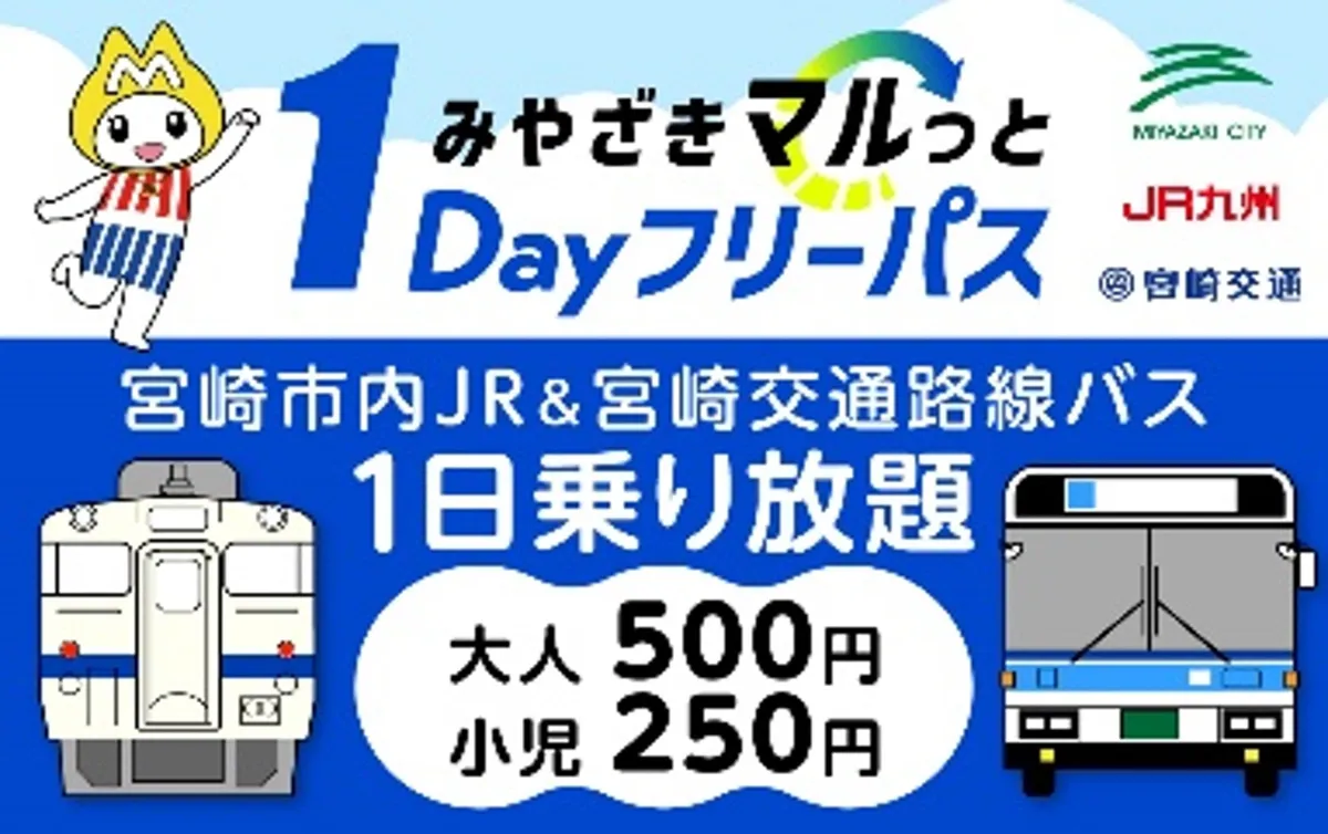 宮崎交通株式会社と九州旅客鉄道株式会社(JR九州)は、公共交通機関の利用促進を目的にした「みやざきマルっと1Dayフリーパス」の第3期販売を発表しました。この乗車券は、11月1日から12月8日までの期間にわたり、宮崎市内の各交通機関が乗り放題となるもので、特に土曜、日曜、月曜に利用が可能です。