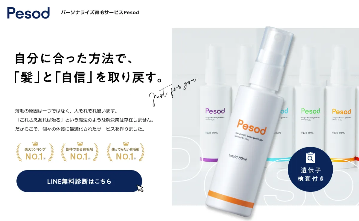 「Pesod」では、遺伝子検査を通じてそれぞれの個別の脱毛要因を分析し、副作用の少ない成分を含んだ育毛剤を提供します。この育毛剤は、さらにオンライン診療を介して遺伝子に基づいた治療法を提供することが可能です。特に、女性や副作用を懸念する方に向けた新しい選択肢を示すことが、その大きな特徴なのでしょう。