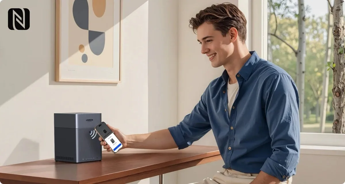 さらに、UGREEN NASync DH4300 Plusは、新たにNFCワンタッチ接続機能を搭載しました。この機能により、スマートフォンからのアクセスが簡単に行えるため、多忙な日常の中でも手軽にデータを管理することができます。