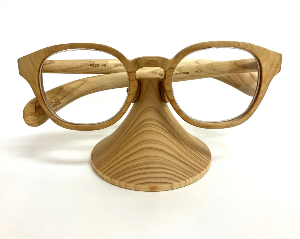 富士山檜眼鏡を注文すると、製品には木製ケースと富士山型のメガネスタンドが付属します。このメガネケースは、日常使いだけでなく、インテリアとしても楽しむことができます。レンズには国内最大手のHOYA製を使用しているため、視力も安心です。