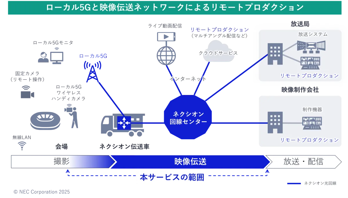 ネクシオン株式会社と日本電気株式会社(NEC)が手を組み、放送メディア向けに新しい映像伝送サービスを展開します。このサービスは、ネクシオンが全国に敷設した映像伝送ネットワークと、NECの最先端ローカル5G技術を組み合わせて実現されます。映像伝送ネットワークは、アリーナやスタジアムなどのスポーツ施設やイベント会場に特化しており、サービス提供は2024年4月24日から開始されます。