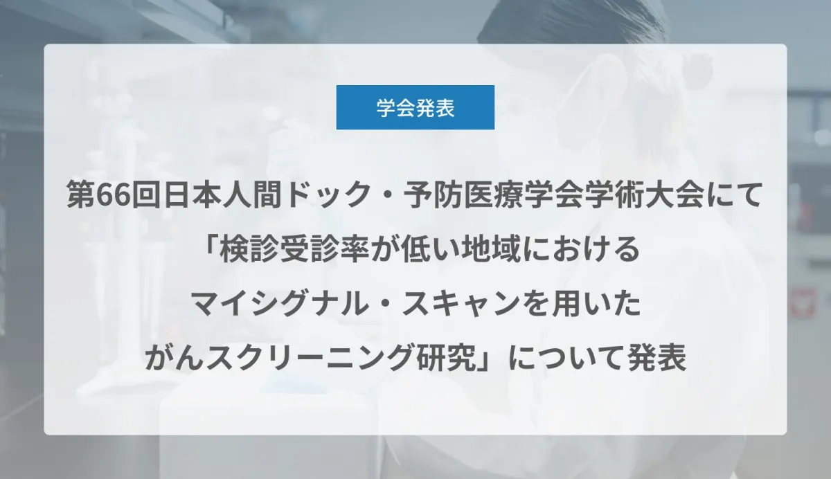 2025年8月22日から23日、国立京都国際会館で開催された第66回日本人間ドック・予防医療学会学術大会において、Craif株式会社のCTOである市川祐樹氏が「検診受診率が低い地域におけるマイシグナル・スキャンを用いたがんスクリーニングに関する前向き観察研究」を一般演題として発表しました。この発表は、特に低い検診受診率が課題となっている地域における新しい医療戦略を示すものであり、参加者の注目を集めました。