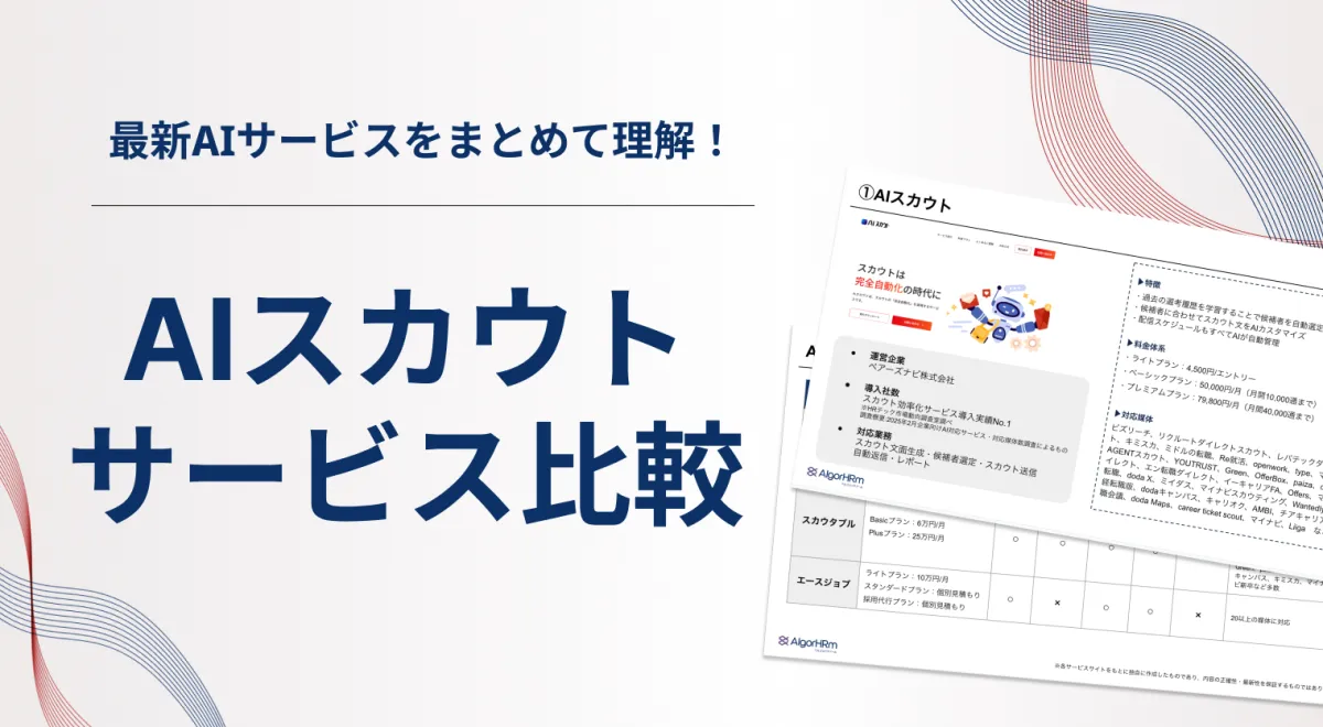 今回発表された「AIスカウトサービス比較資料」では、さまざまなAIスカウトサービスを体系的に整理。具体的には、以下の内容が含まれています:
