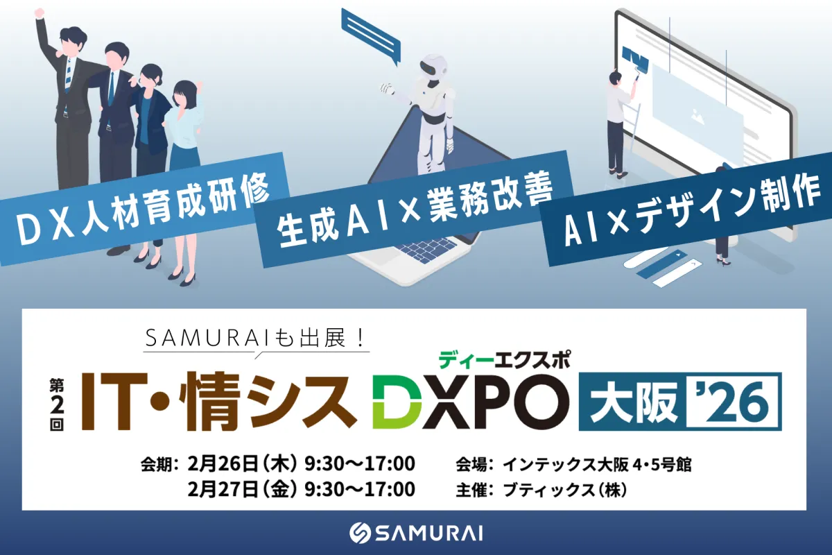 「IT・情シスDXPO大阪」は、2026年2月26日(木)と27日(金)の二日間、インテックス大阪で開催されます。SAMURAIは小間番号12-20に出展し、企業のDX推進に悩む方々に対して新たな社内研修プランを提案します。事前登録が必要ですが、入場は無料ですので、ぜひお越しください。IT人材の育成に興味がある方々にとって、非常に価値のある機会となるでしょう。