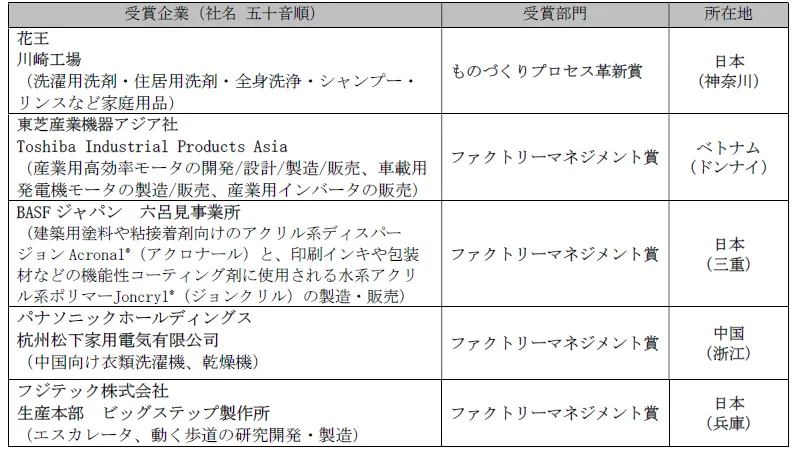 - - 受賞部門: ファクトリーマネジメント賞