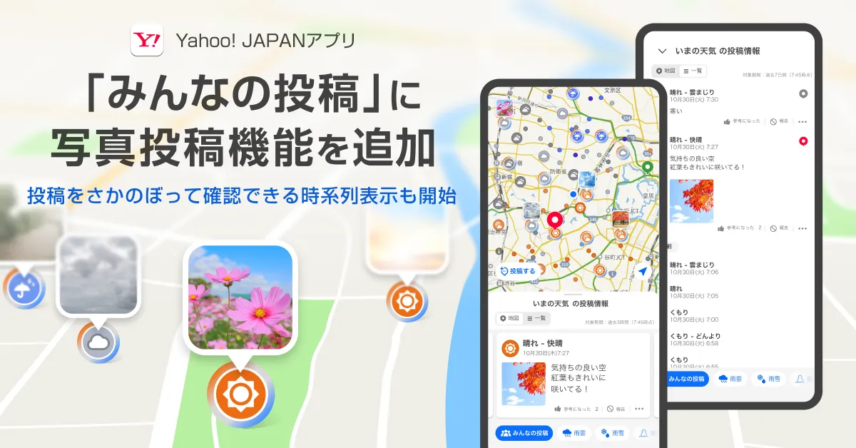 LINEヤフー株式会社が提供する「Yahoo! JAPAN」アプリが、ユーザー参加型の「みんなの投稿」モードに新たな機能を追加しました。この新機能を利用することで、ユーザーはリアルタイムの天候や季節の様子を写真で共有できるようになります。スマートフォンのアプリで簡単に、地域の天候状況を視覚的に確認できるのはありがたいですね。