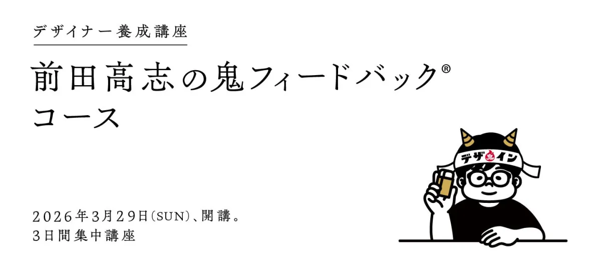 デザインの現場で成長を感じずに悩んでいる方へ。2026年3月29日(日)に、「デザイナー養成講座 前田高志の鬼フィードバックコース」がスタートします。この講座は、デザイナー・クリエイティブディレクターの前田高志氏が指導を行い、実践的なフィードバックを通じてデザイン力を向上させることを目的としています。