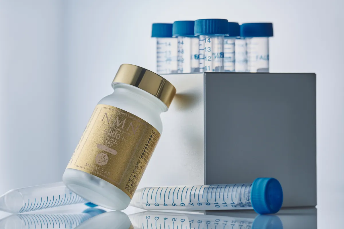 近年、サプリメント成分として注目を集めているニコチンアミドモノヌクレオチド(NMN)は、生命のメカニズムに深く関与する物質と言われています。ミライラボは、このNMNを約38億年以上にわたって受け継がれてきた生命のメカニズムの象徴と捉え、関連研究に基づいて独自の製品開発を行っています。