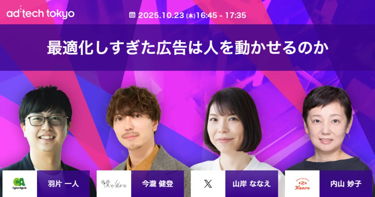 特に注目すべきは、今瀧氏が参加するセッション「最適化しすぎた広告は人を動かせるのか」。このセッションでは、広告が持つ力とその限界について深く掘り下げられる予定です。モデレーターには株式会社サイバーエージェントの羽片一人氏が登壇し、他のスピーカーとしてX Corp. Japanの山岸ななえ氏、カンロ株式会社の内山妙子氏を迎えます。