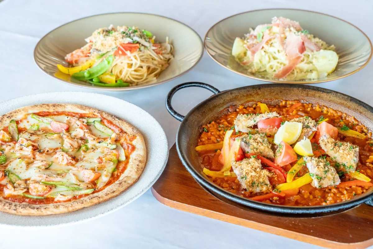 さらに、6月の毎週木・金曜日(2025年6月5日(木)〜6月27日(金)まで)には、人気のランチバイキングが期間限定で開催されます。自慢のパエリアをはじめ、季節のパスタやピザ、さらにバラエティ豊かな前菜やデザートが心ゆくまで楽しめる充実のラインナップ。目の前に広がるきららビーチの絶景を眺めながらの食事は、まさに非日常の体験となるでしょう。心もお腹も満たされる感動のひとときを、ぜひこの機会にご体感ください。ランチバイキングは11:30から15:30(ラストオーダー14:30)まで、レストランにて提供されます。