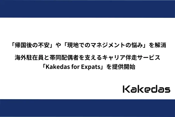 株式会社Kakedasは、海外駐在員とその帯同配偶者を対象にしたキャリア伴走サービス「Kakedas for Expats」の提供を開始しました。このサービスは、海外での生活やビジネスで抱える特有の悩みを解消することを目的としています。企業にとっても、駐在員のパフォーマンス向上やエンゲージメントの強化、離職防止に貢献すると期待されています。