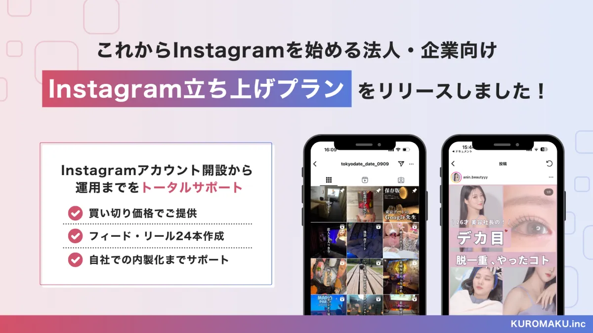 企業向けのInstagram投稿作成代行サービス、「Instagram立ち上げプラン」が株式会社KUROMAKUにより正式にローンチされました。このサービスは、エンターテインメントのインフルエンサーの専門ノウハウを取り入れ、企業のブランドストーリーを反映した質の高い投稿コンテンツを創作することを目的としています。
