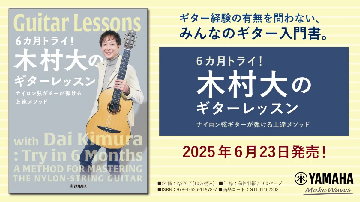 株式会社ヤマハミュージックエンタテインメントホールディングスが、2025年6月23日に新刊『6カ月トライ!木村大のギターレッスン ナイロン弦ギターが弾ける上達メソッド』をリリースします。この書籍は、日本を代表するギタリスト木村大による画期的なメソッドを紹介し、ナイロン弦ギターの魅力を広めることを目的としています。
