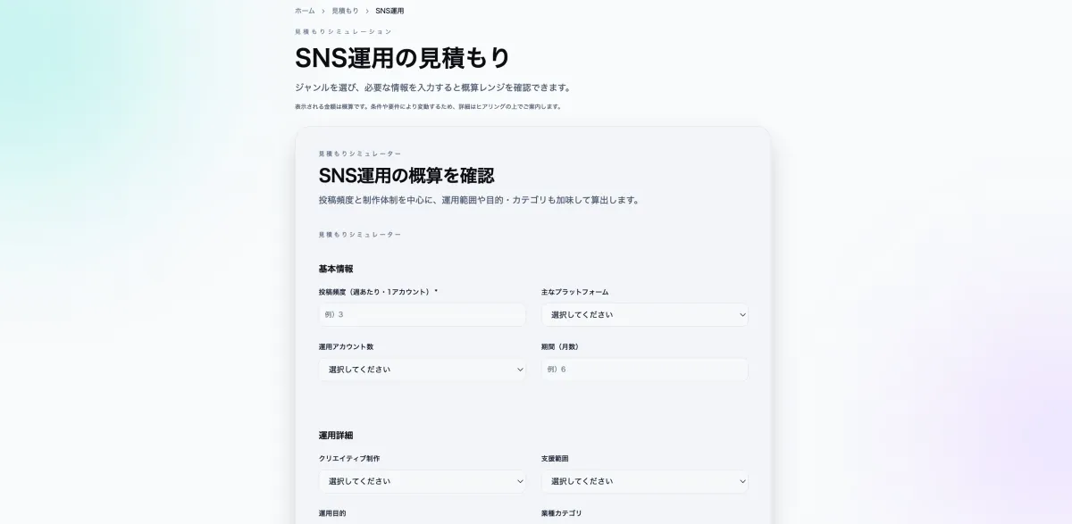 この「SNS運用 見積もりシミュレーション」は、SNS運用をこれから検討している企業に限らず、既存の運用体制を見直したい企業にとっても非常に有用なツールです。すでに運用している企業にとっては、コストの見直しや新しい運営体制の導入時に清晰な判断材料を提供します。これにより、企業のSNS戦略がより一層明確になることでしょう。