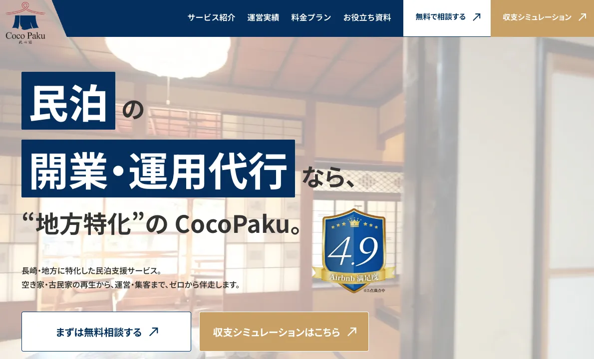 「CocoPaku」は、遊休不動産を利用して民泊を立ち上げたいと考えるオーナーや、民泊に関心があるが運営経験がない方、長崎で副業として検討している方、すでに民泊を運営中で運営に課題を感じている方などに最適です。