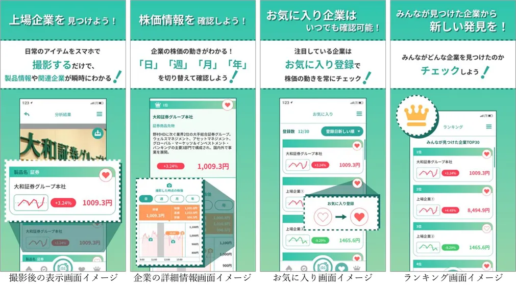 株式会社ヘッドウォータースと株式会社ヘッドウォータースコンサルティングが、株式会社大和証券グループ本社および株式会社QUICKとの協力によって、スマートフォン向けアプリ「Daiwa Lens β版」をリリースしました。このアプリは、ユーザーが撮影した写真に基づいて、関連する企業の株価や投資情報を提示します。