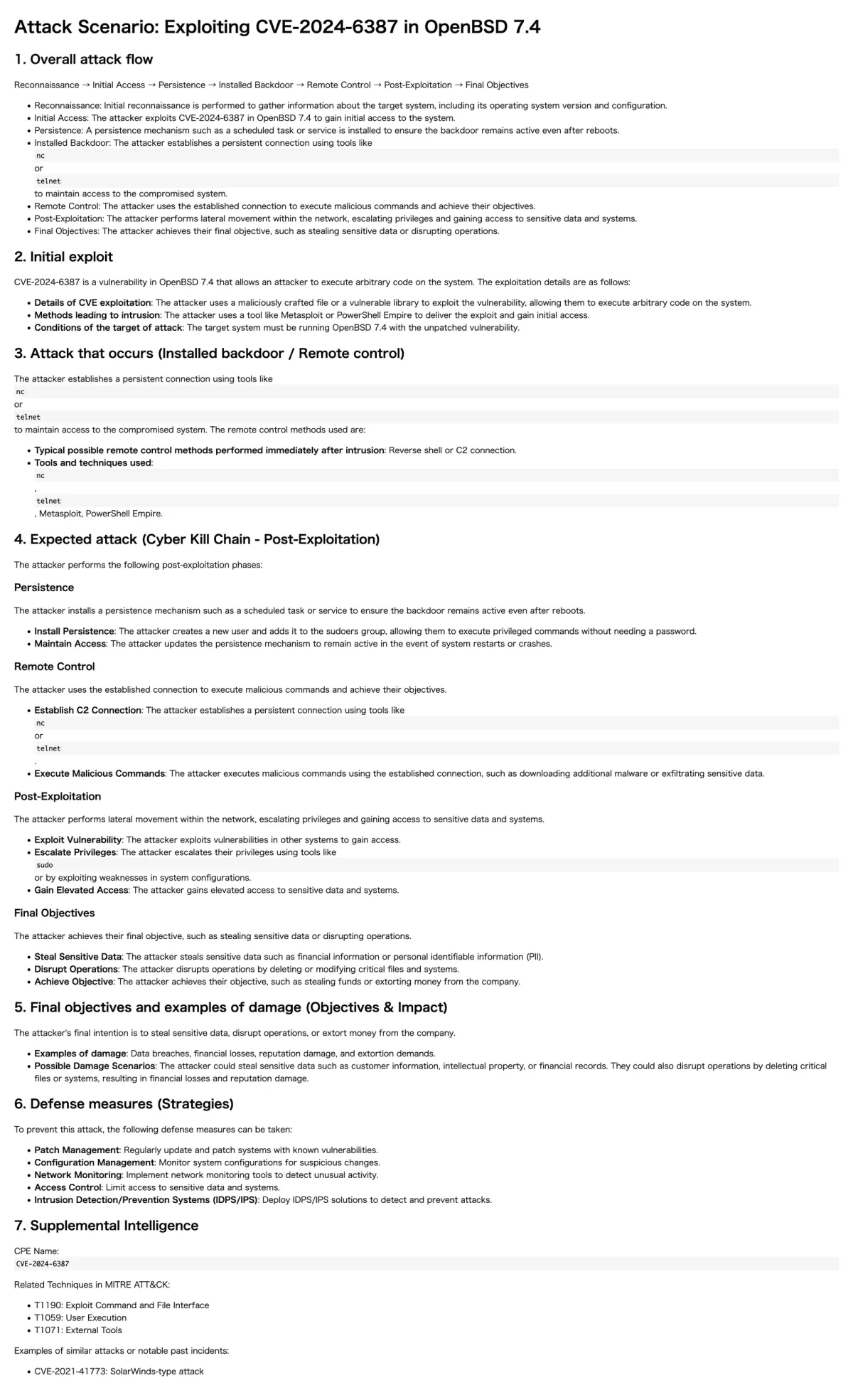 - - CVEから自動生成: 指定したCVEに基づいて、AIが関連する攻撃フェーズを抽出・構造化。