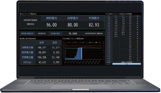 『e-Reducer I』は、電力デマンドと使用量を一元管理できる特性を持つため、企業側は複雑なシステムを導入することなく、簡単にエネルギーの見える化を実現できます。さらに、受電電力の監視だけでなく、設定した目標電力を常時モニタリングし、もしそれを超えた場合には警報メールが発報される機能も搭載。これにより、実際の電力消費状況にリアルタイムで対応が可能になります。