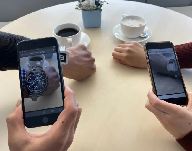 「CITIZEN AR try」は、特別なアプリを必要とせず、専用のARリストバンドを使って腕時計を試着できます。方法はシンプルです。まず、時計を取り扱う専門店や量販店で配布されるARリストバンドを腕に装着し、QRコードを使用して専用サイトにアクセス。スマートフォンまたはタブレットでリストバンドにかざすだけで、実寸大の時計が画面上に表示され、サイズ感や質感をリアルに体験することができます。