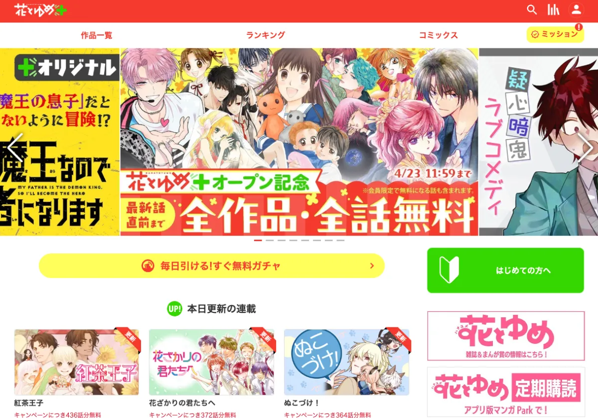 『花とゆめ+』の最大の魅力は、豊富なコンテンツとユーザー参加型の機能です。ユーザー登録を行うことで、毎日無料で漫画を読める機会や、ミッションをクリアすることで特典が得られる仕組みが用意されています。登録は非常に簡単で、メールアドレスを入力するだけで済み、登録したIDは他の連携サイトでも利用可能です。