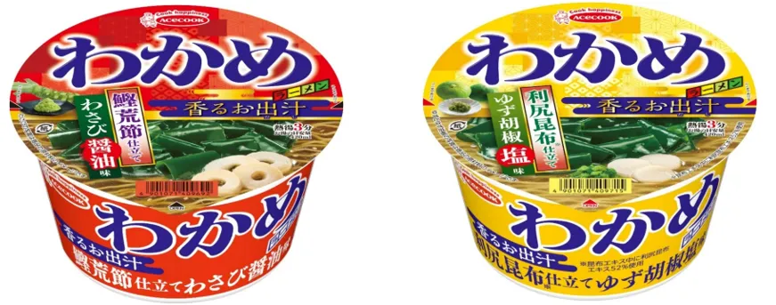 2026年4月27日、エースコック株式会社から新しいわかめラーメンが全国で発売される。今回の商品のテーマは「お出汁」であり、磯の香り豊かなわかめとの相性を追求。鰹や昆布を使用したお出汁の旨みと、香り豊かな薬味の組み合わせが特徴だ。新たに発売されるのは、わさび醤油味と、利尻昆布仕立てのゆず胡椒塩味の二つ。